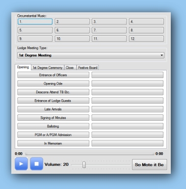 customise the Virtual Masonic Organist to whatever working any particular Masonic Lodge performs.